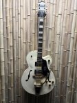 The Limited Edition G2420TG Streamliner Hollow Body Single-Cut with Bigsby® is designed for the modern guitarist who yearns for something beyond the norm. Featuring gleaming gold hardware, metal G-Arrow control knobs, and pearloid Big Block inlays, the G2420TG's modern sonics, updated electronics and authentically elegant style create the latest iteration of That Great Gretsch® Sound!™